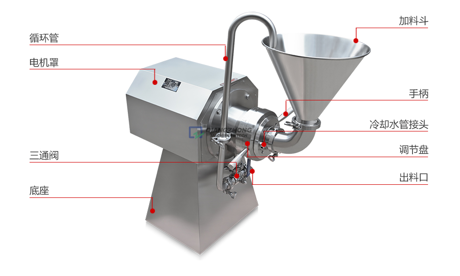 ● 卫生级不锈钢材质。除电机外凡与物料相接触的零部件全部采用不锈钢制成,尤其关键的动、静磨盘进行强化处理,因此具有良好的耐腐蚀、耐磨性,使所加工的物料无污染、卫生清洁。